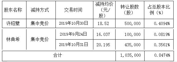 近日,公司收到股东许绍壁、林典希出具的《关于减持股份进展情况的告知函》,截至本公告披露日,股东许绍壁、林典希股份减持数量已过半。根据《深圳证券交易所中小板上市公司规范运作指引》、《上市公司股东、董监高减持股份的若干规定》、《深圳证券交易所上市公司股东及董事、监事、高级管理人员减持股份实施细则》等规定,现将有关情况公告如下: