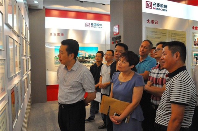 9月6日,刚到澄海履新的澄海区委书记刘永铭,在区委区政府领导庄素华、林典发等陪同下,到名臣健康用品股份有限公司调研、指导工作。公司董事长、总经理陈勤发,副董事长许绍壁等公司领导陪同观看了企业品牌和产品展厅,并就公司生产经营情况和企业发展思路向刘永铭书记作了汇报