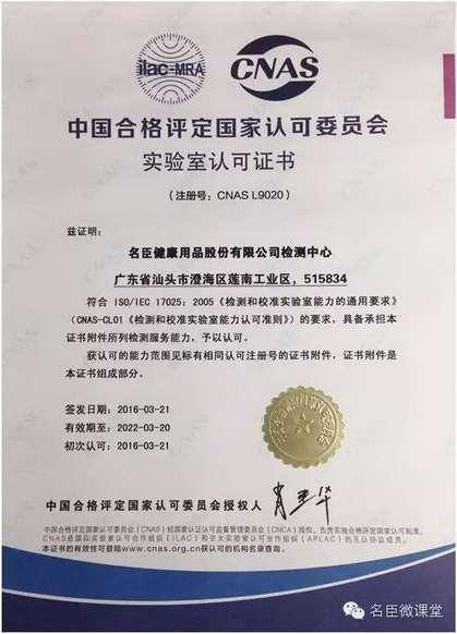 公司检测中心获中国合格评定国家认可委员会实验室认可证书(注册号:CNAS L9020)